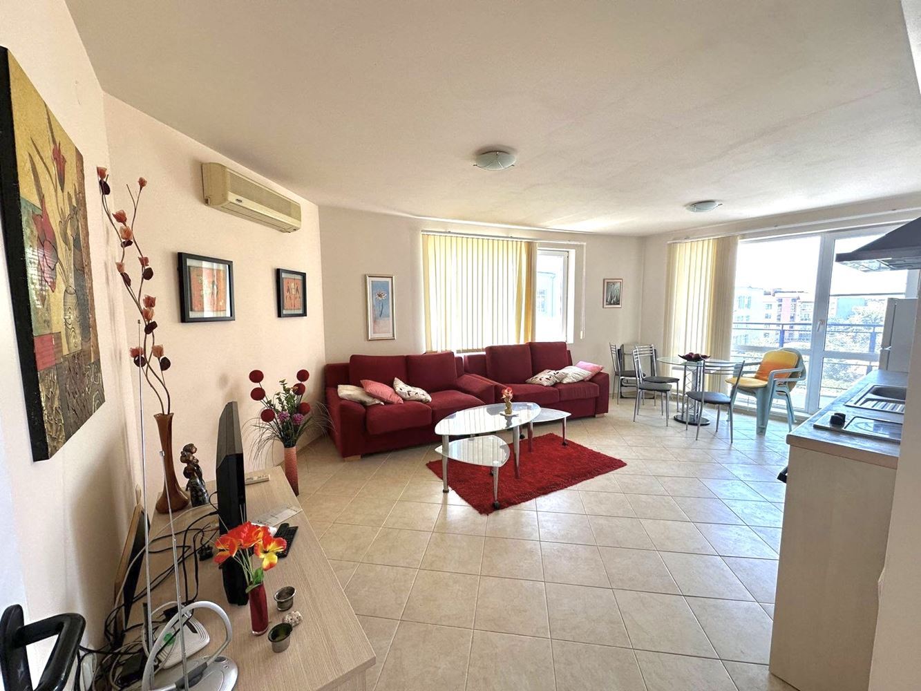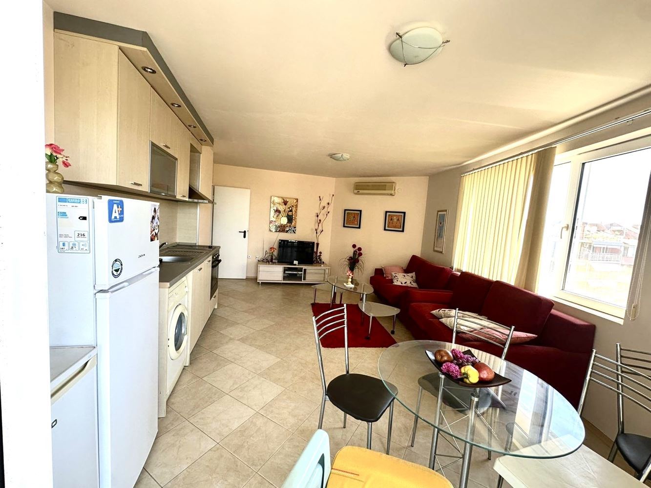 Przedstawiamy funkcjonalne i przytulne mieszkanie z jedną sypialnią o powierzchni 62 m², położone na czwartym piętrze budynku mieszkalnego w Pomorie, bez opłaty za utrzymanie – co stanowi wyjątkową zaletę dla całorocznego zamieszkania lub długoterminowej inwestycji. Nieruchomość znajduje się w dogodnej i dobrze skomunikowanej lokalizacji, w pobliżu morza oraz centrum miasta, zapewniając komfortowy i pełnowartościowy styl życia.