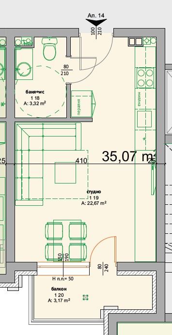 Studio ma powierzchnię 40.89 m² i znajduje się na pierwszym piętrze mieszkalnym. Przestrzeń jest funkcjonalnie zaplanowana: salon z miejscem na aneks kuchenny i jadalnię, strefa sypialna oraz wyjście na przytulny balkon — idealny na poranną kawę lub wieczorny relaks. Łazienka jest osobna i w pełni wykończona.