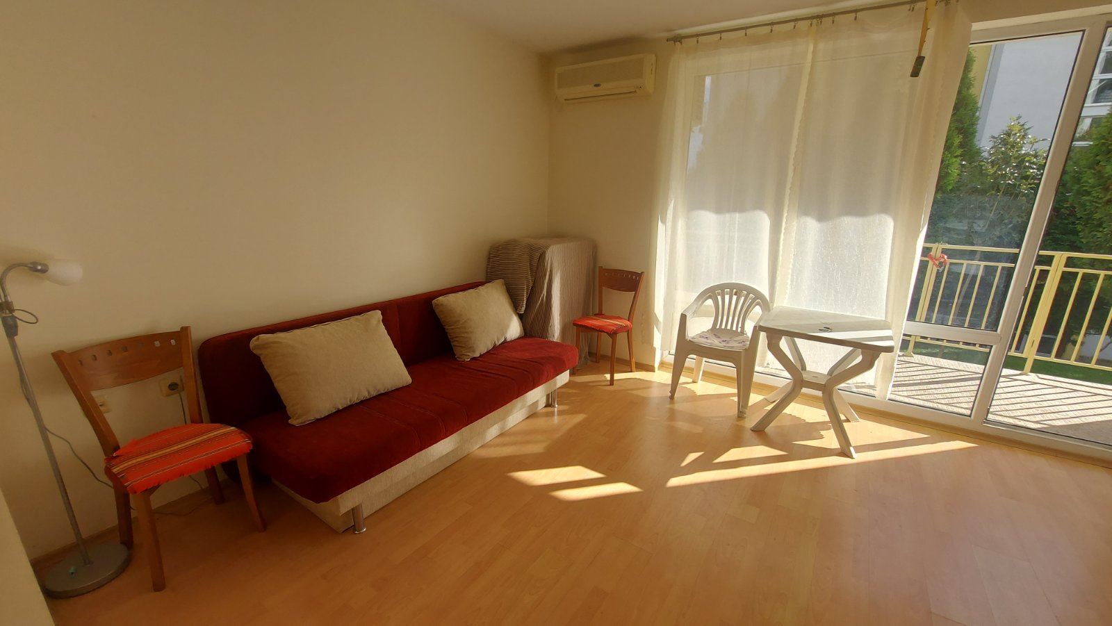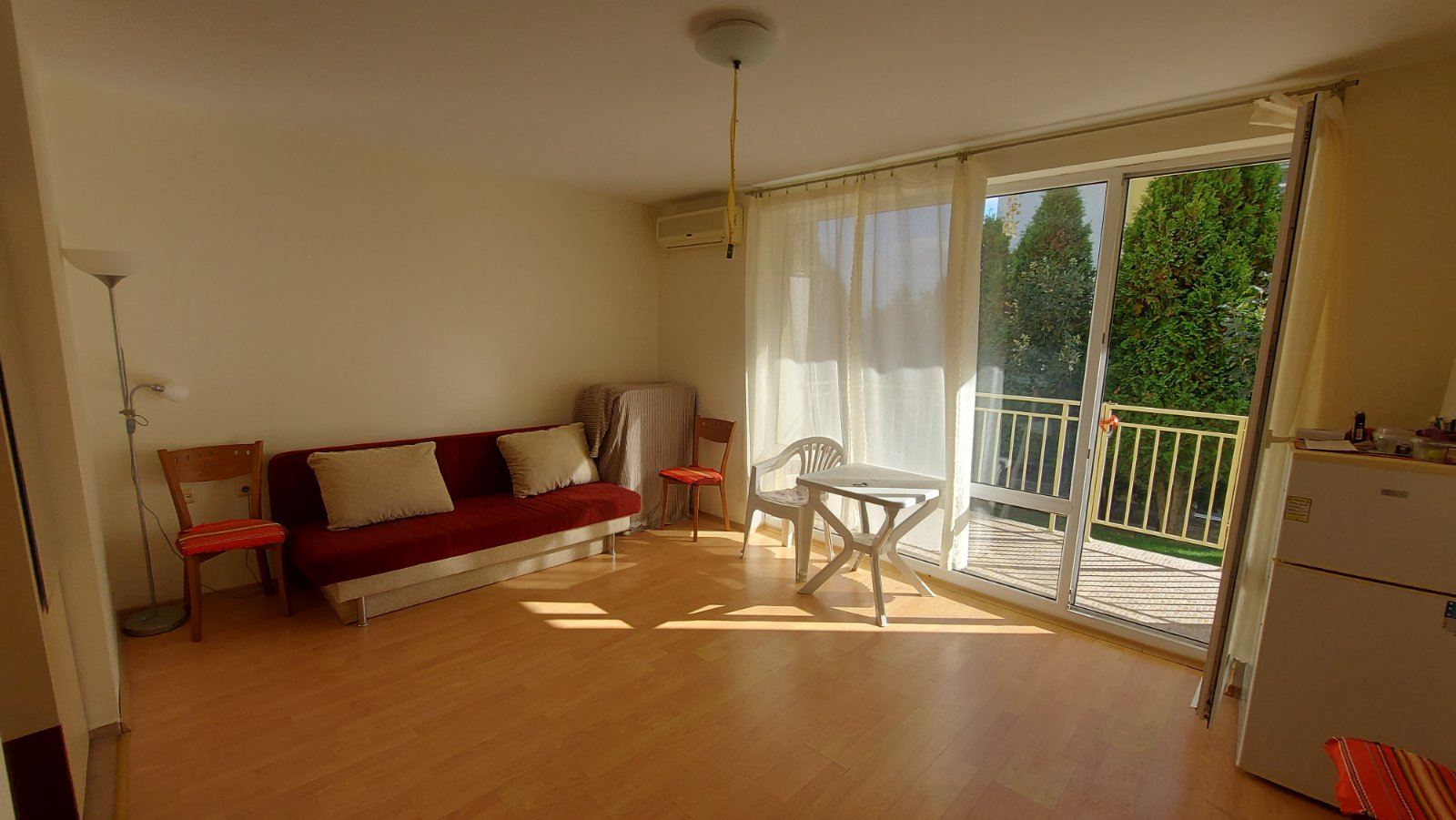 Oferujemy na sprzedaż przytulne studio na parterze o łącznej powierzchni 42 m² w miejscowości Święty Włas – miejscu, gdzie morze spotyka się ze spokojem zielonych wzgórz. Nieruchomość wyróżnia się funkcjonalnym układem pomieszczeń oraz rzadką zaletą: bezpośrednim wyjściem z balkonu na zadbany trawnik, idealnym na poranną kawę na świeżym powietrzu, zabawę dzieci lub wypoczynek z pupilem. Ze studia rozciąga się przyjemny, częściowy widok na morze, który dodaje uroku i poczucia bliskości z naturą. Przestrzeń została zaprojektowana z myślą o komforcie i praktyczności – otwarty układ pozwala łatwo wydzielić strefy wypoczynku i jadalni, a naturalne światło tworzy poczucie przestrzeni i przytulności. Łazienka jest oddzielna i funkcjonalna, a balkon stanowi przedłużenie salonu, prowadzące wprost na zielony teren.