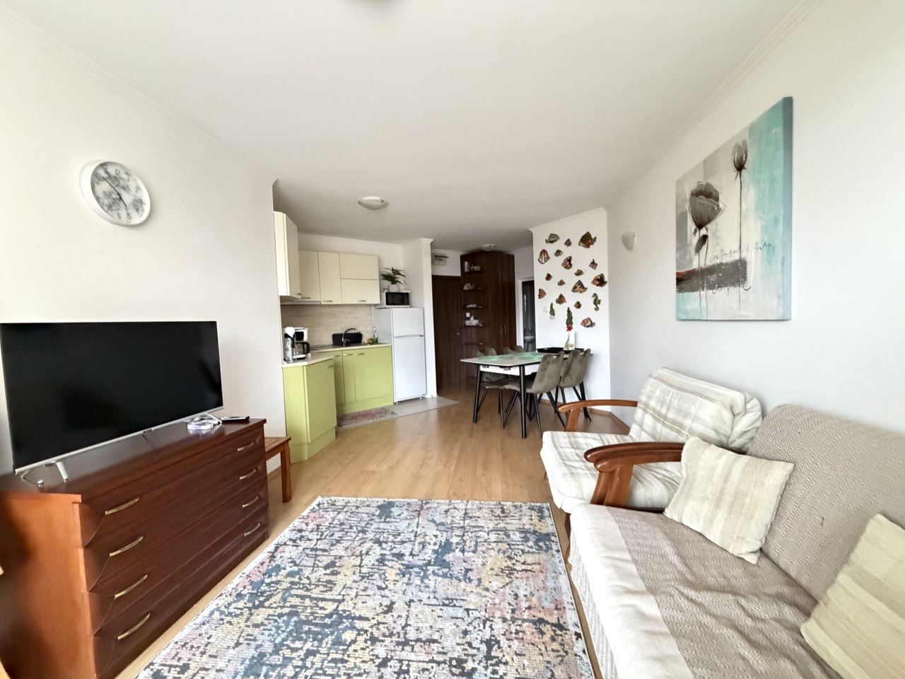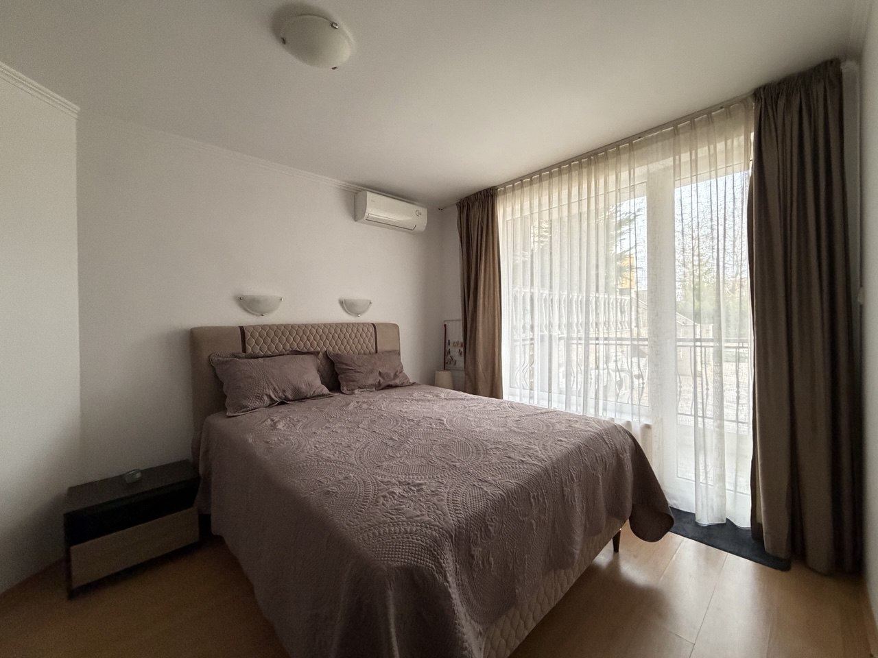 Prezentujemy apartament z jedną sypialnią, położony na drugim piętrze, o powierzchni 65 m², w prestiżowym kompleksie w Sveti Vlas. Nieruchomość jest funkcjonalna i jasna, z doskonałym układem pomieszczeń, zapewniając komfortową przestrzeń do życia lub na pobyt wakacyjny.