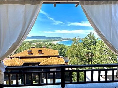 Przestronny apartament z jedną sypialnią z panoramicznym widokiem na morze i dużym tarasem w elitarnym kompleksie w Sozopolu