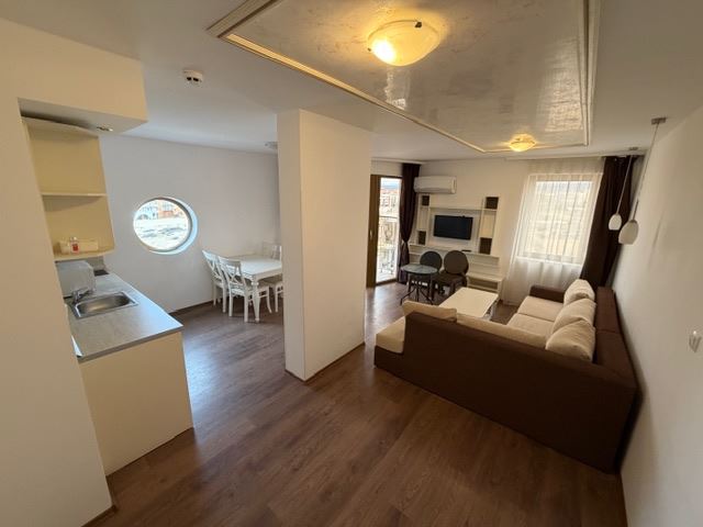 Prezentujemy luksusowy dwupokojowy apartament o łącznej powierzchni 89,69 m², położony na piątym piętrze z ośmiu w nowoczesnym kompleksie na pierwszej linii w Słonecznym Brzegu. Nieruchomość oferuje niezakłócony widok na morze, widoczny z przestronnych pomieszczeń, co tworzy poczucie wolności i komfortu. Apartament jest idealny jako dom wakacyjny, do całorocznego zamieszkania lub jako inwestycja z wysokim potencjałem wynajmu, dzięki doskonałej lokalizacji i jakości kompleksu.