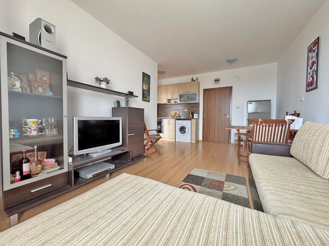 Przestrzeń i komfort – dwupokojowe mieszkanie z dużym tarasem w kompleksie w rejonie Słonecznego Brzegu