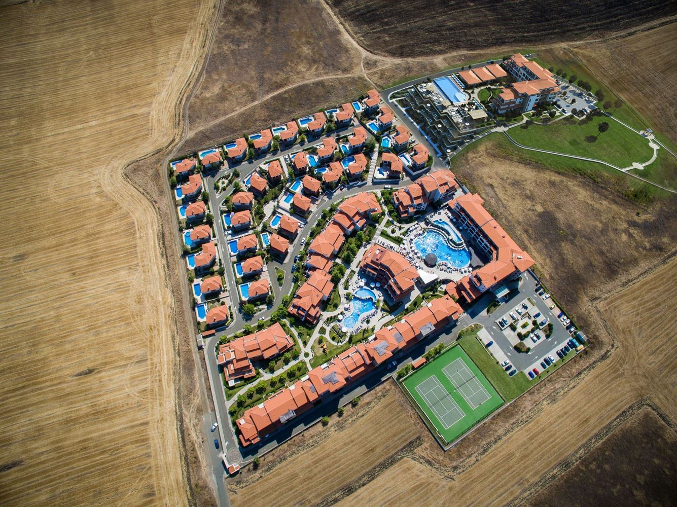 Kompleks jest położony z dala od tętniącego życiem środowiska miejskiego, co gwarantuje ciszę i relaks, a jednocześnie znajduje się zaledwie kilka minut jazdy samochodem od dużych kurortów i głównych arterii drogowych. Zapewnia to łatwy dostęp do całej niezbędnej infrastruktury, sklepów, lokali i usług. Lokalizacja jest wyjątkowo atrakcyjna – kompleks znajduje się na malowniczym pagórkowatym wzniesieniu w dolinie rzeki Aheloy, skąd rozciąga się niesamowity panoramiczny widok na okoliczne krajobrazy naturalne. Łącząc klimat morski i bliskość natury, miejsce oferuje zdrowe i spokojne środowisko do życia.