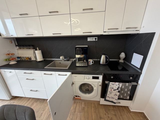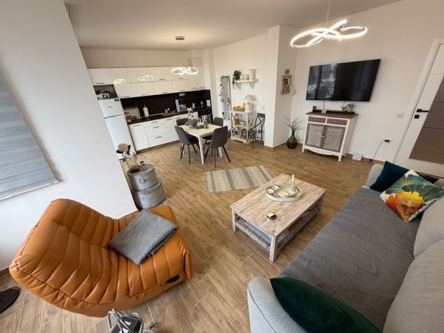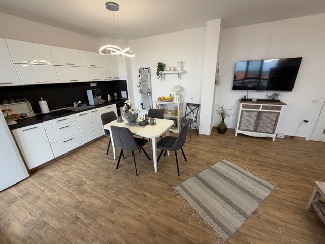 Mieszkanie zachwyca przestronnym salonem z kuchnią, zaprojektowanym tak, aby tworzyć harmonijną i funkcjonalną przestrzeń do życia. Jasna strefa dzienna oferuje wystarczająco miejsca do wydzielenia części wypoczynkowej i jadalni, a część kuchenna jest praktycznie zorganizowana dla wygody i komfortu w codziennym życiu. Duża sypialnia zapewnia przytulność i spokój, oferując wystarczającą przestrzeń do pełnego umeblowania i przechowywania. Łazienka jest wyposażona we wszystko, co niezbędne, wykonana w nowoczesnym stylu i z dbałością o detale. Do apartamentu przynależy taras, z którego rozciągają się piękne widoki oraz możliwość cieszenia się świeżym powietrzem i spokojem z dala od hałasu dużego miasta. To idealne miejsce na poranną kawę lub wieczorny odpoczynek po długim dniu. Nieruchomość jest sprzedawana w pełni i nowocześnie umeblowana, gotowa do zamieszkania bez konieczności dodatkowych inwestycji. Wnętrze jest zgodne ze współczesnymi trendami i oferuje komfortową oraz przytulną atmosferę.