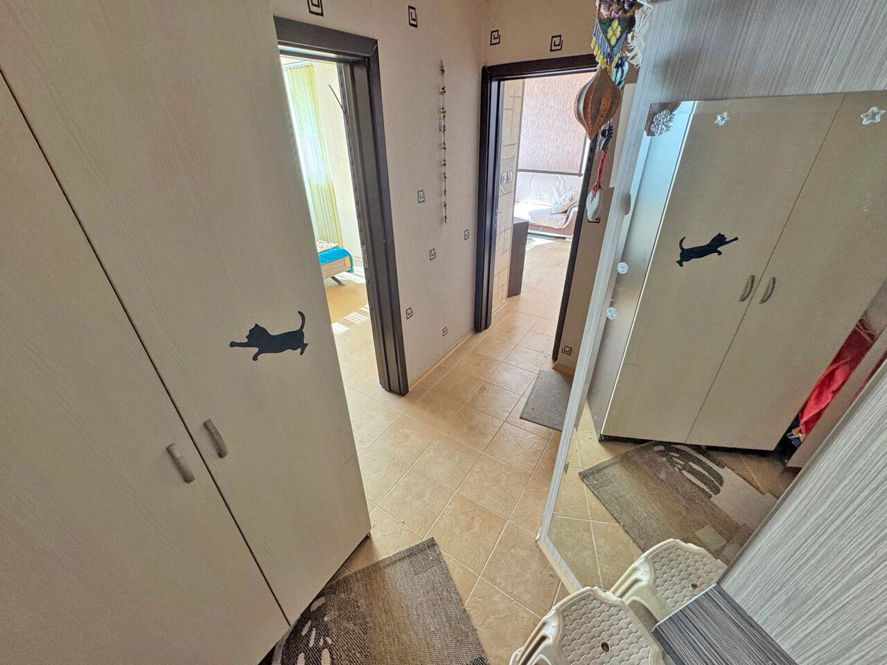 Oferujemy na sprzedaż komfortowe i w pełni umeblowane mieszkanie, położone na pierwszym podwyższonym piętrze budynku w kompleksie w okolicy Słonecznego Brzegu. Nieruchomość ma całkowitą powierzchnię 60 м² i łączy w sobie funkcjonalność, spokój i doskonałe warunki zarówno do całorocznego zamieszkania, jak i na wakacje.