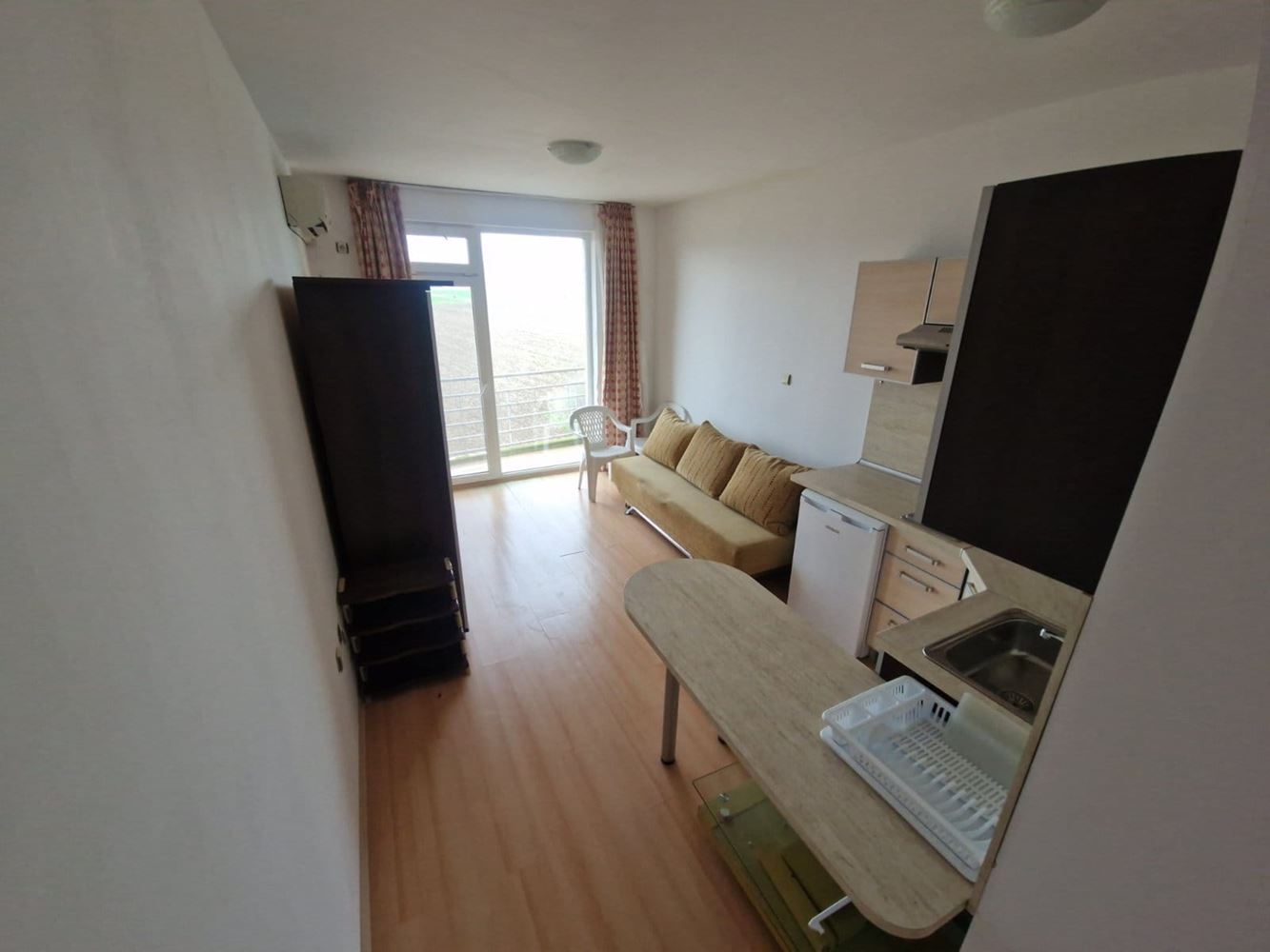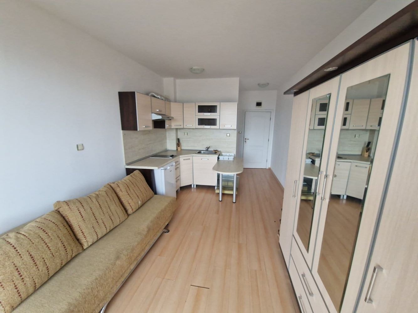 Oferujemy na sprzedaż studio o łącznej powierzchni 28 m², położone na drugim piętrze w rodzinnym zamkniętym kompleksie w okolicy Słonecznego Brzegu. Mieszkanie zaprojektowane jest z praktycznym układem, który pozwala na maksymalne wykorzystanie każdej przestrzeni. Studio sprzedawane jest w pełni umeblowane i wyposażone, gotowe do zamieszkania lub wynajmu od razu. Wnętrze jest jasne i przytulne, tworząc przyjemne wrażenie domowego komfortu, a meble i sprzęty zostały dobrane tak, aby zapewniać funkcjonalność i wygodę.