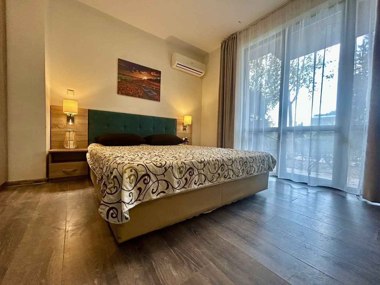 Przedstawiamy Państwu stylowe studio o łącznej powierzchni 36 m², położone na parterze w malowniczej części Słonecznego Brzegu. Nieruchomość imponuje swoim własnym ogródkiem, który zapewnia dodatkową przestrzeń na relaks na świeżym powietrzu, grill lub po prostu przytulne chwile na świeżym powietrzu. To sprawia, że studio jest niezwykle komfortowe i praktyczne zarówno do osobistego użytku, jak i na wakacje.