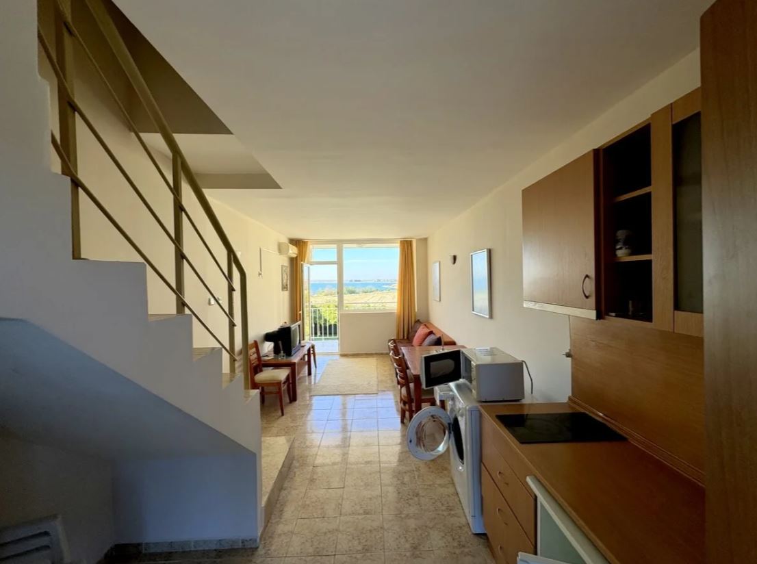 Na sprzedaż jest przytulny i stylowy apartament w malowniczej miejscowości Ravda. Położona na drugim piętrze nieruchomość oferuje komfort i nowoczesny design, łącząc wygodę nowoczesnego życia z bliskością morza. Maisonette o łącznej powierzchni 66 m2 jest idealny dla rodziny. Na pierwszym piętrze znajduje się wyposażona kuchnia połączona z przestronnym salonem, idealnym do relaksu i spotkań rodzinnych, a także łazienka. Na drugim piętrze znajduje się jasna i przytulna sypialnia, która zapewnia komfort i relaks. Nieruchomość obejmuje balkon z widokiem na kompleks, na którym można delektować się filiżanką kawy lub innego napoju.