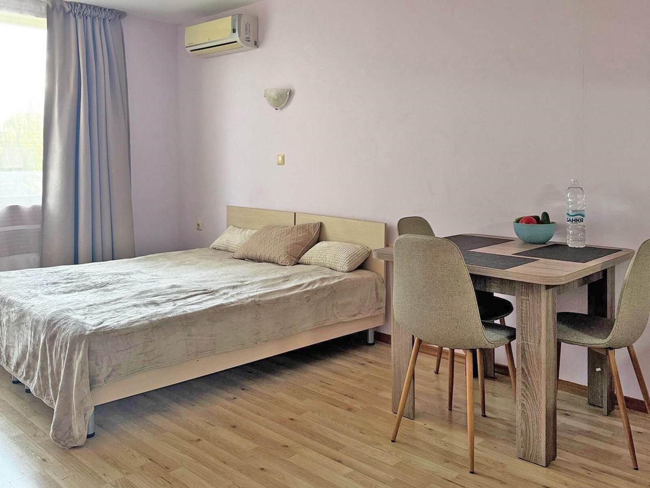 Przedstawiamy przytulną i funkcjonalną kawalerkę z bezpośrednim wyjściem na zielony wewnętrzny dziedziniec, położoną w sercu Słonecznego Brzegu, zaledwie około 10 minut spacerem od morza i malowniczej plaży. Nieruchomość idealnie nadaje się zarówno na wakacyjny wypoczynek, jak i do całorocznego zamieszkania dzięki dogodnej lokalizacji i bogatej infrastrukturze w okolicy.