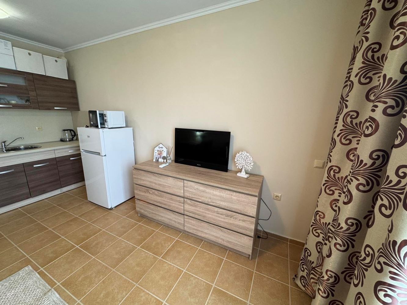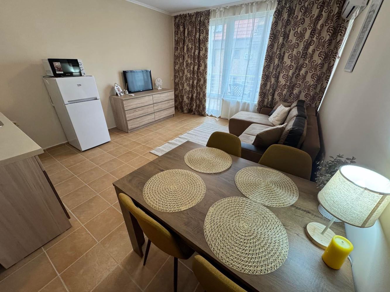 Słoneczne i przestronne studio 300 m od morza w Pomorie – umeblowane, z niskim czynszem