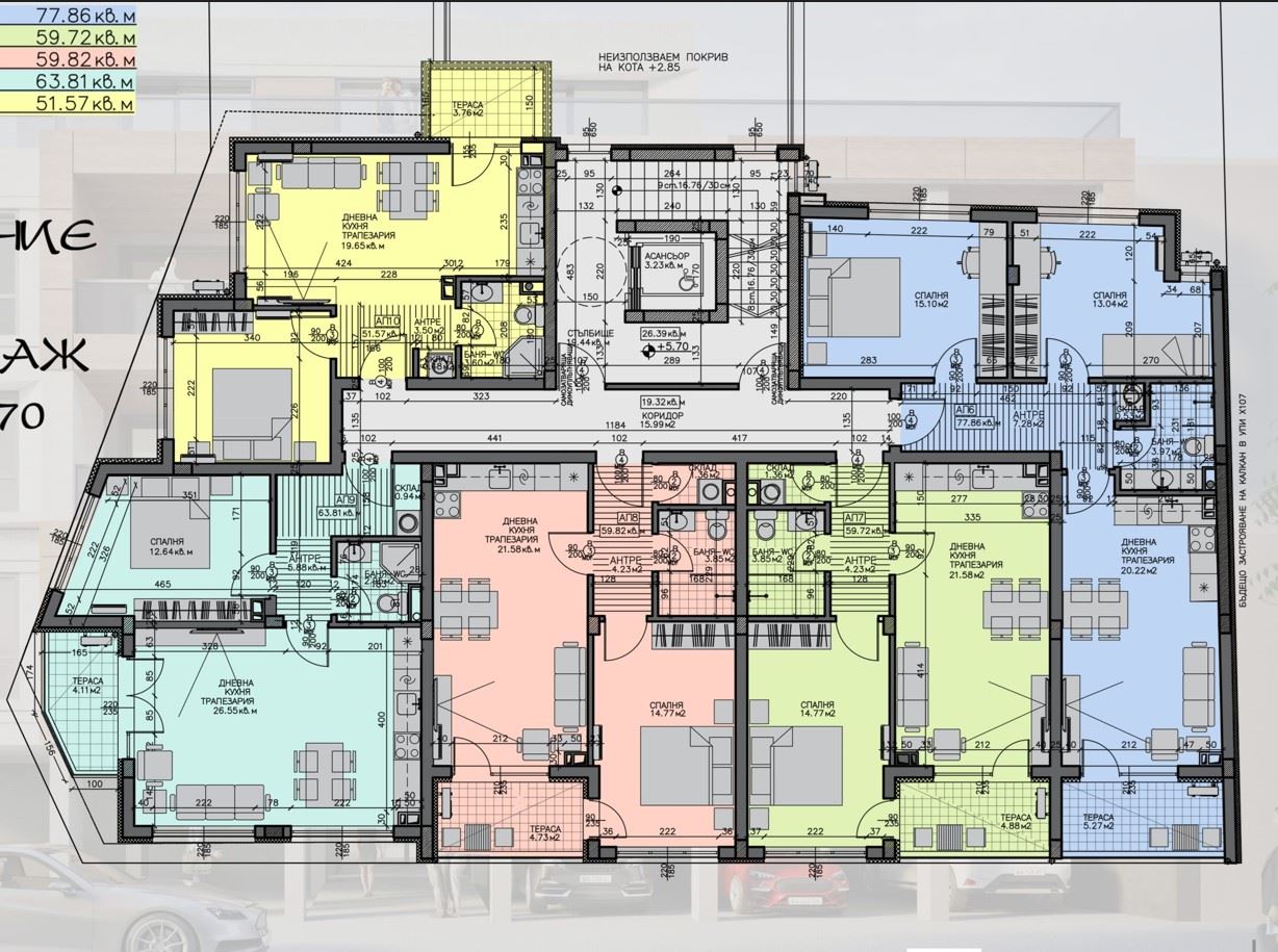 Przedstawiamy Państwu przestronne mieszkanie dwupokojowe, położone na trzecim piętrze w nowym budynku mieszkalnym o nowoczesnym wyglądzie, łączącym styl, jakość i funkcjonalność. Nieruchomość znajduje się w jednej z najbardziej zielonych, dobrze skomunikowanych i preferowanych dzielnic Burgas – Zornitsa, która oferuje spokojne środowisko mieszkaniowe, doskonałą infrastrukturę oraz szybki dostęp do wszystkich udogodnień miasta.