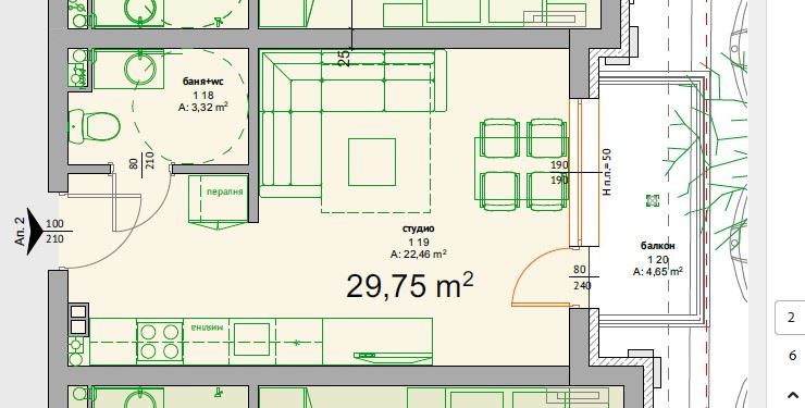 Nieruchomość znajduje się na parterze i ma łączną powierzchnię 34,69 m². Funkcjonalny układ zapewnia wygodną jednoprzestrzenną część mieszkalną z miejscem na aneks kuchenny, strefą wypoczynku i snu, wyjściem na balkon, a także osobną łazienką/WC. Studio otrzymuje przyjemne naturalne światło i tworzy poczucie komfortu oraz praktyczności w codziennym życiu. Mieszkanie jest oddawane pod klucz – gotowe do umeblowania. Obejmuje to wykończone podłogi, otynkowane i pomalowane ściany, zamontowane drzwi wewnętrzne oraz w pełni wykończoną i wyposażoną łazienkę. Przewidziane są podłączenia do aneksu kuchennego i sprzętu AGD, co umożliwia szybkie i łatwe urządzenie mieszkania według własnego gustu.