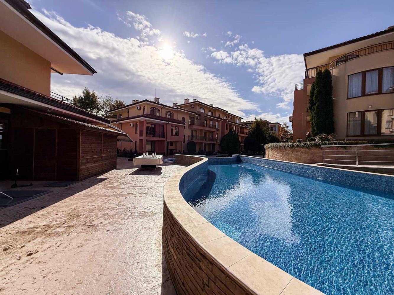 Budynek posiada windę zapewniającą codzienny komfort, a w kompleksie znajduje się plac zabaw – bezpieczne i przyjemne miejsce dla dzieci pod opieką dorosłych. Lokalizacja w Sveti Vlas łączy spokój, czyste powietrze i wygodny dostęp do miejskich udogodnień, dzięki czemu nieruchomość nadaje się zarówno do zamieszkania przez cały rok, jak i na wakacyjny pobyt.