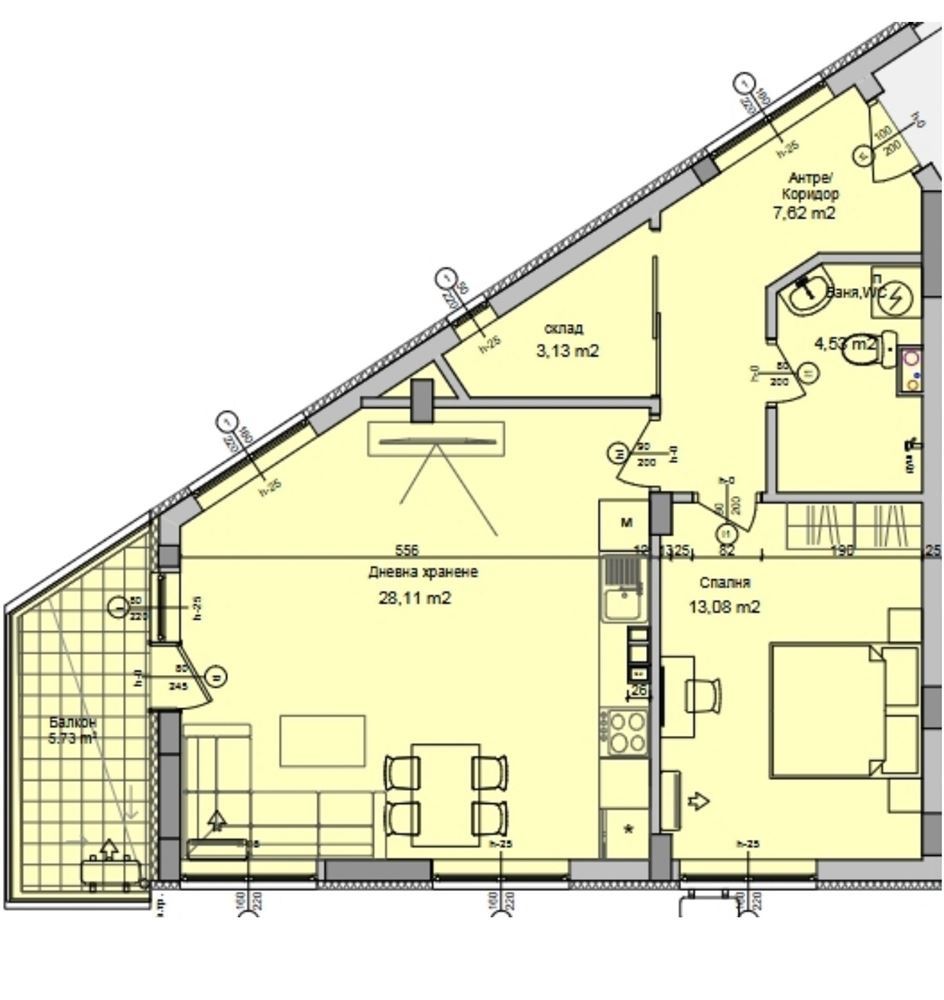 Przedstawiamy przestronne i jasne mieszkanie w prestiżowej dzielnicy Sarafovo w Burgas – idealny wybór na dom nad morzem, mieszkanie wakacyjne lub inwestycję o dużym potencjale wynajmu. Nieruchomość w nowym budownictwie znajduje się na trzecim piętrze nowoczesnego budynku z windą, zaledwie 300 metrów od złocistego piasku i morza. Całkowita powierzchnia mieszkania to 88,77 m². Rozkład: przedpokój, przestronny salon z kuchnią i wyjściem na wygodny taras, jedna osobna sypialnia, duża i praktyczna garderoba/składzik oraz łazienka z WC. Mieszkanie według projektu jest dwupokojowe, jednak dzięki funkcjonalnemu układowi można je przerobić na trzypokojowe – praktyczne rozwiązanie dla rodzin lub osób potrzebujących dodatkowej sypialni czy miejsca do pracy.