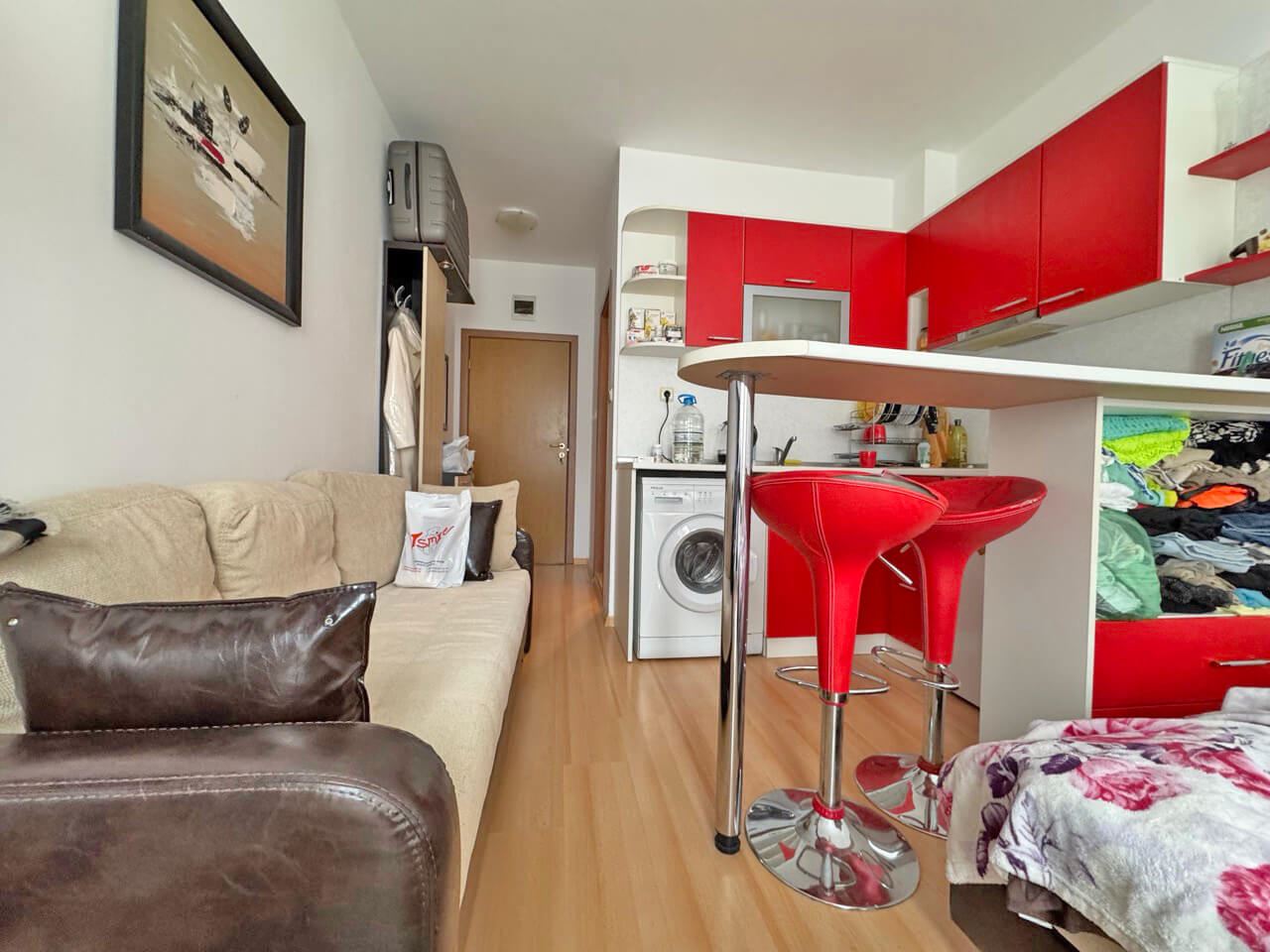 Oferujemy przytulne studio o całkowitej powierzchni 28 м², bez balkonu, położone na drugim piętrze nowoczesnego kompleksu w Słonecznym Brzegu. Nieruchomość jest w pełni umeblowana i gotowa do użytkowania, oferując komfort i praktyczność, niezależnie od tego, czy szukasz domu wakacyjnego, czy inwestycji z możliwością wynajmu. Ze studia roztacza się widok na miasto, który tworzy poczucie przestrzeni i światła.