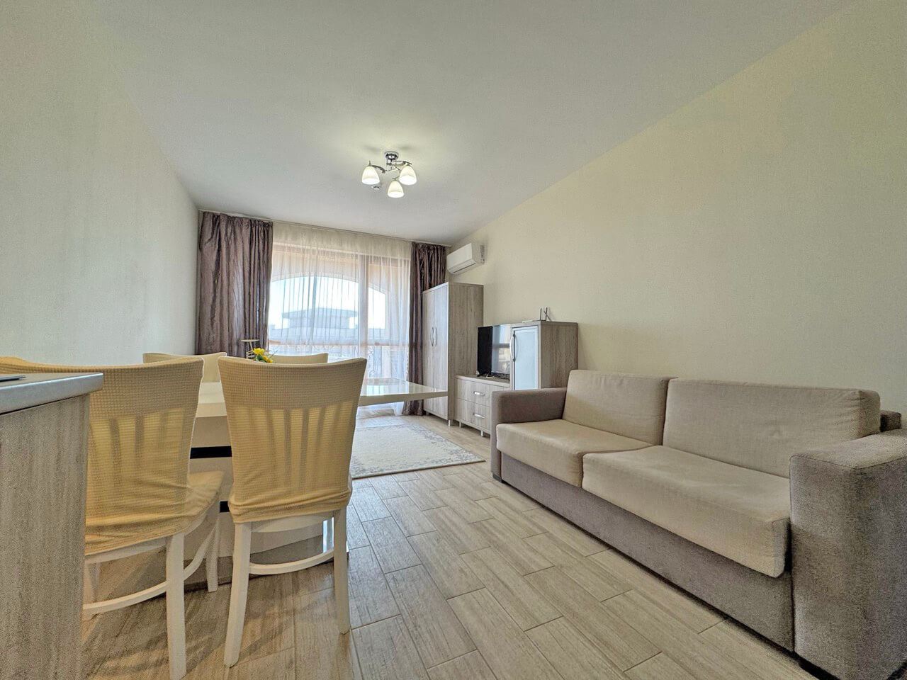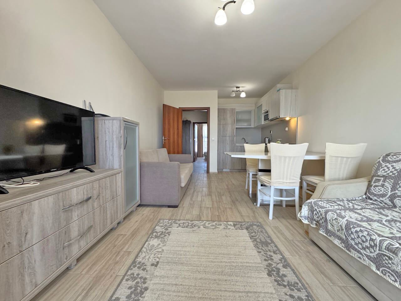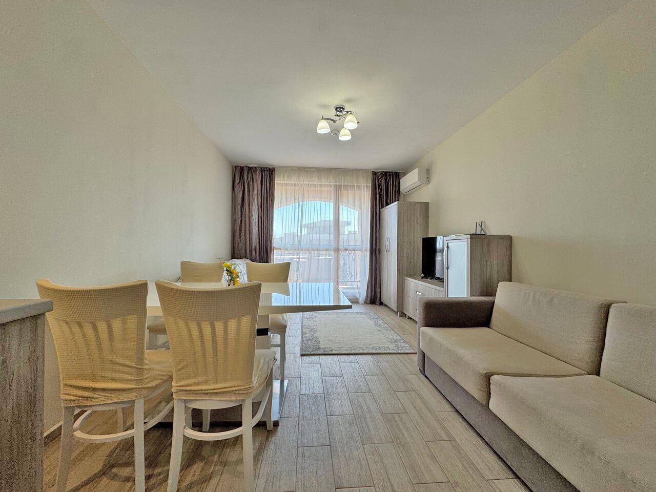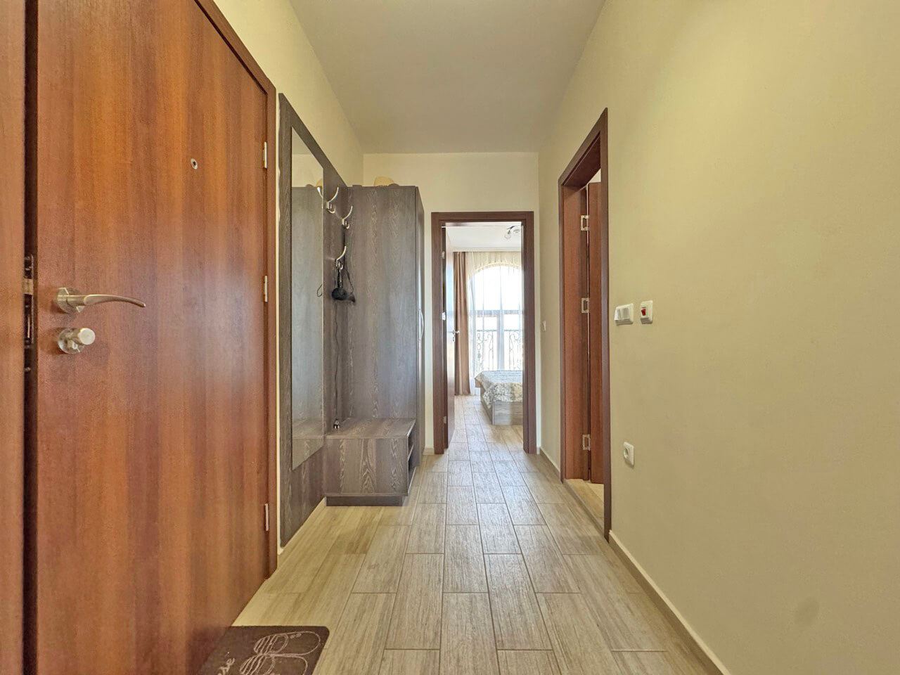 Oferujemy na sprzedaż w pełni umeblowane dwupokojowe mieszkanie, położone w nowoczesnym i wyróżniającym się kompleksie w Słonecznym Brzegu. Apartament znajduje się na szóstym piętrze i ma powierzchnię 60 m², oferując komfortową przestrzeń mieszkalną i przyjemną atmosferę, odpowiednią zarówno do wypoczynku wakacyjnego, całorocznego zamieszkania, jak i jako inwestycję pod wynajem.