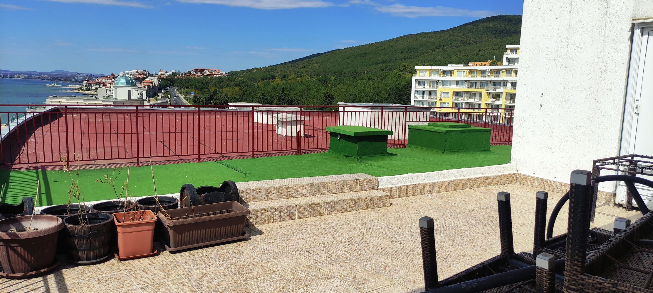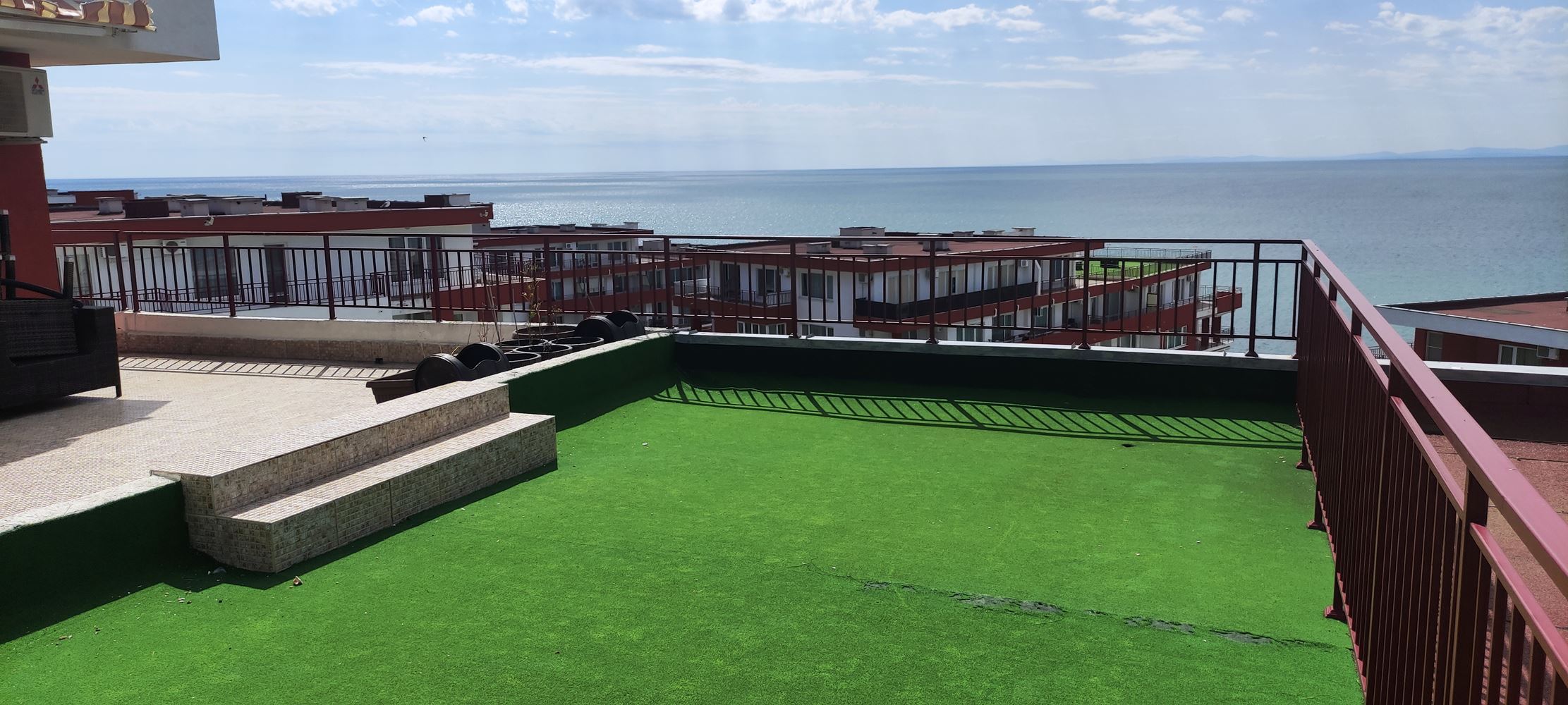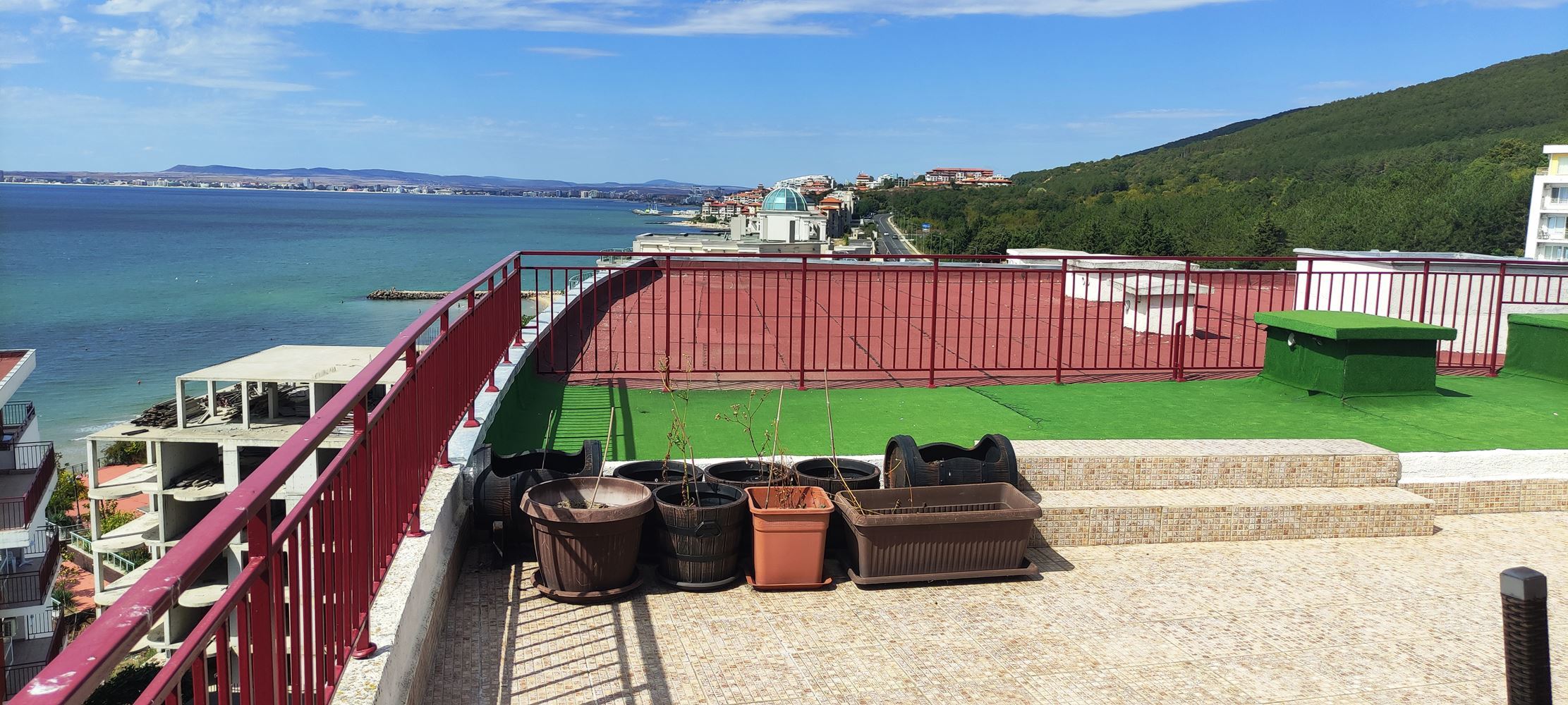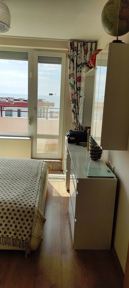 Duże dwupokojowe mieszkanie ze wspaniałą panoramą na morze w kompleksie pierwszej linii z unikalną przyrodą w mieście Sveti Vlas. Mieszkanie znajduje się na najwyższym piętrze. Przestronne, przytulne i jasne, z dużym tarasem, w pełni gotowe do zamieszkania. Kompleks posiada luksusowy park z unikalnym krajobrazem. Infrastruktura obejmuje dwie restauracje, kawiarnię, bar, salę fitness, sklepy, saunę, klub internetowy, spa, klub dla dzieci, salon piękności, gabinet masażu, gabinet lekarski, place zabaw, biuro podróży, baseny i zjeżdżalnie, boiska sportowe, minigolf, tenis, klub gier, parking, stałą ochronę i wiele innych. Profesjonalna firma zarządzająca dba o komfort i spokój wszystkich mieszkańców i ich gości. Układ mieszkania obejmuje salon z aneksem kuchennym, dwie sypialnie, dwie łazienki, ogromny balkon z widokiem na morze i miejscem do opalania. Stylowo umeblowane drogimi markowymi meblami i sprzętem AGD.