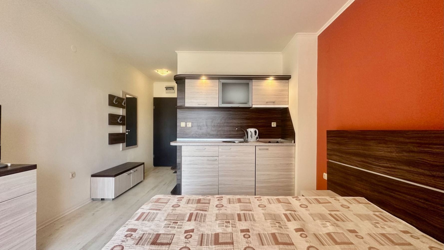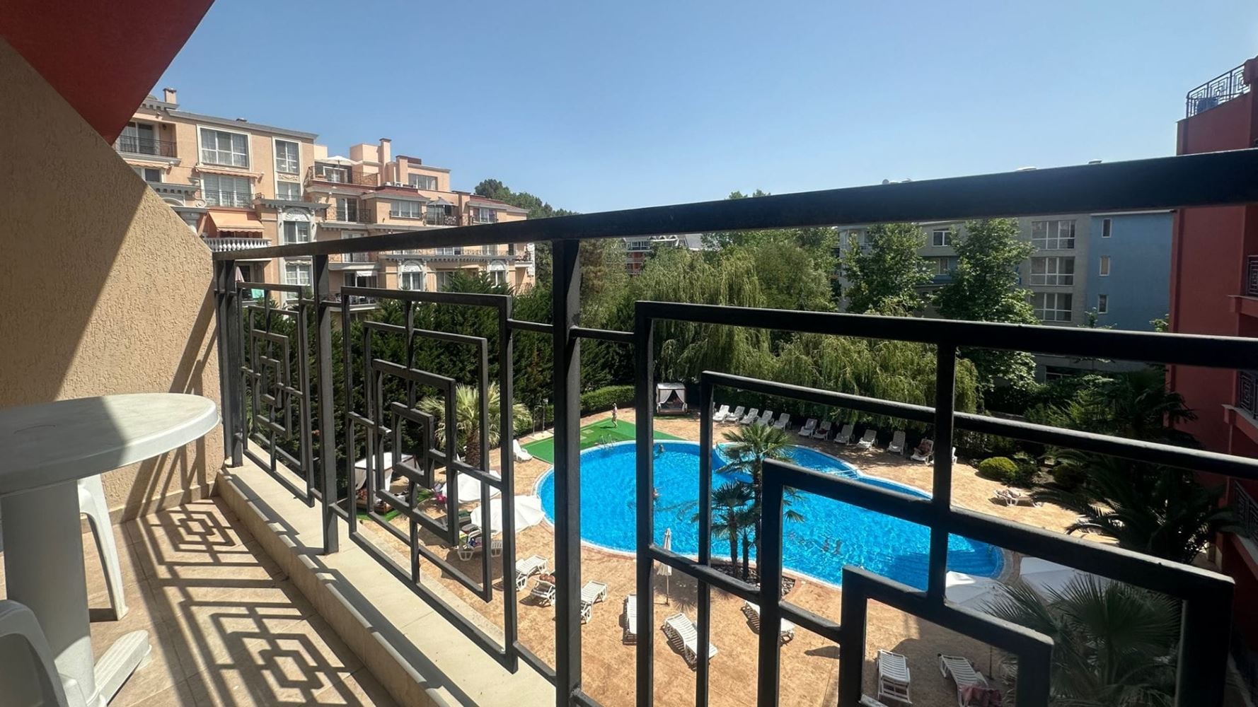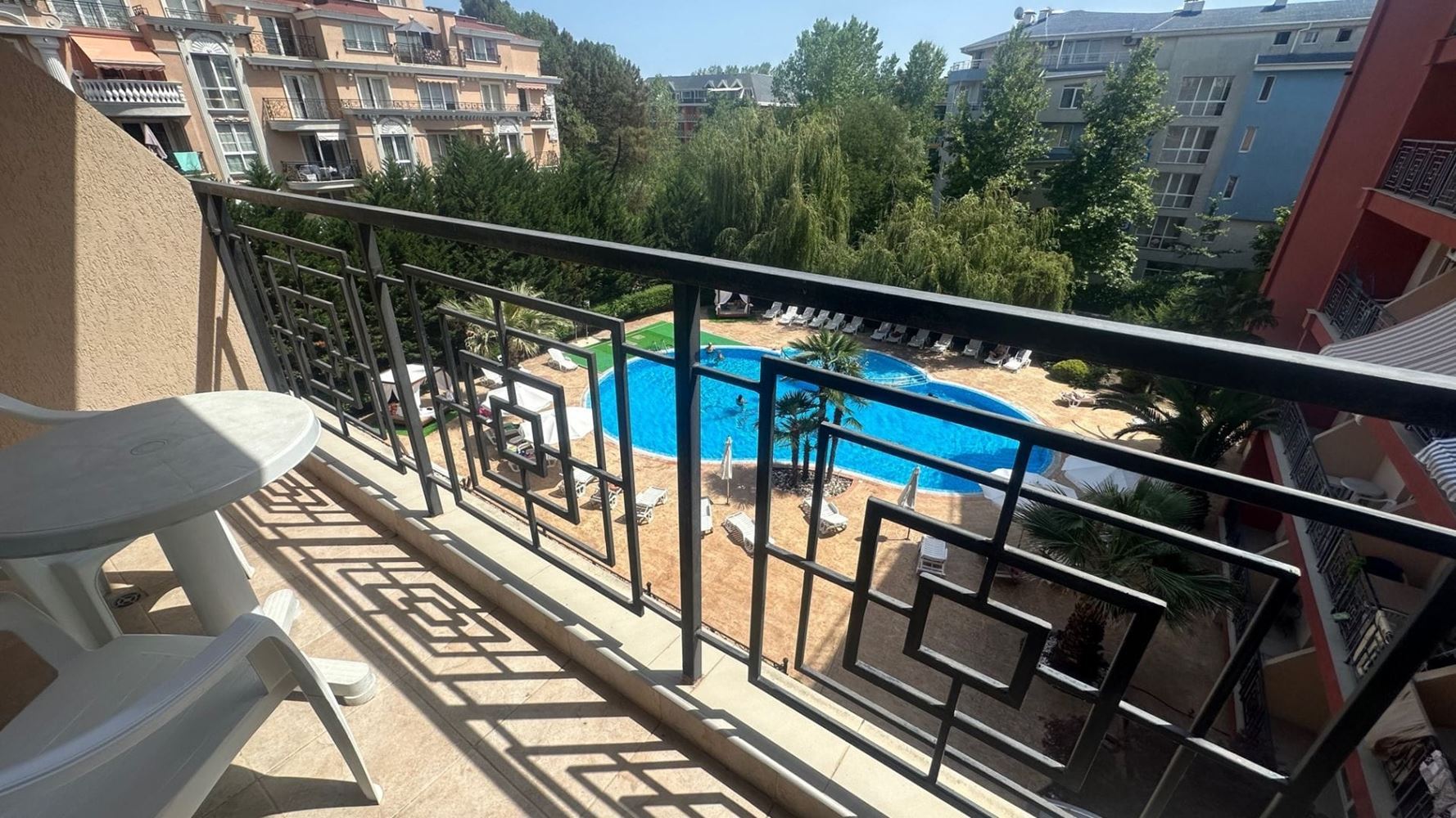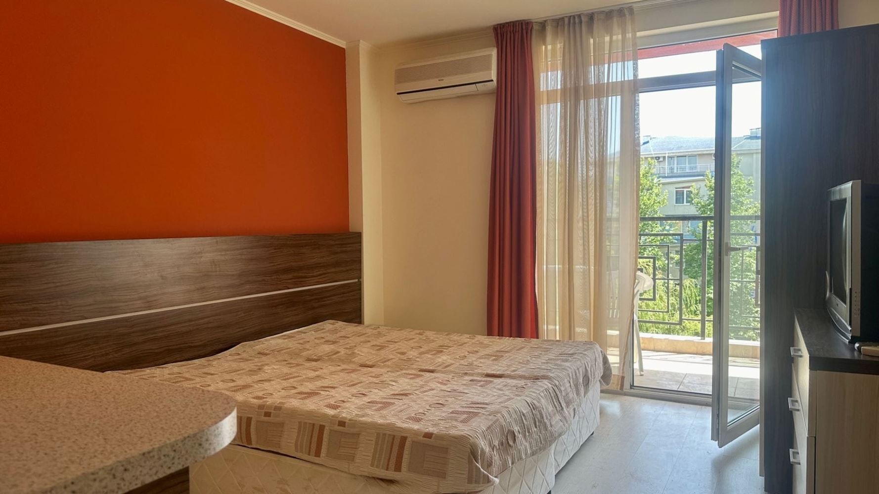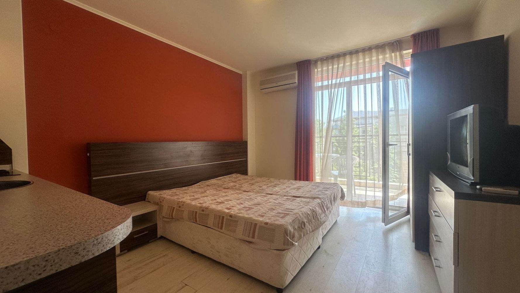 Prezentujemy przytulne i funkcjonalne studio o powierzchni 35 m², położone na czwartym piętrze nowoczesnego kompleksu z windą w jednym z najpopularniejszych kurortów nadmorskich w Bułgarii – Słoneczny Brzeg. Nieruchomość zachwyca dobrze zorganizowaną przestrzenią, w tym przestronnym pokojem, który można dowolnie zaaranżować – do odpoczynku, pracy lub rozrywki, oraz nowoczesną łazienką z pełnym wyposażeniem. Studio posiada balkon z widokiem na basen i okoliczną przyrodę, tworząc idealne miejsce na poranną kawę lub wieczorny relaks. Słoneczne i komfortowe wnętrza zapewniają przyjemną i przytulną atmosferę, idealną do wakacji lub stałego zamieszkania.