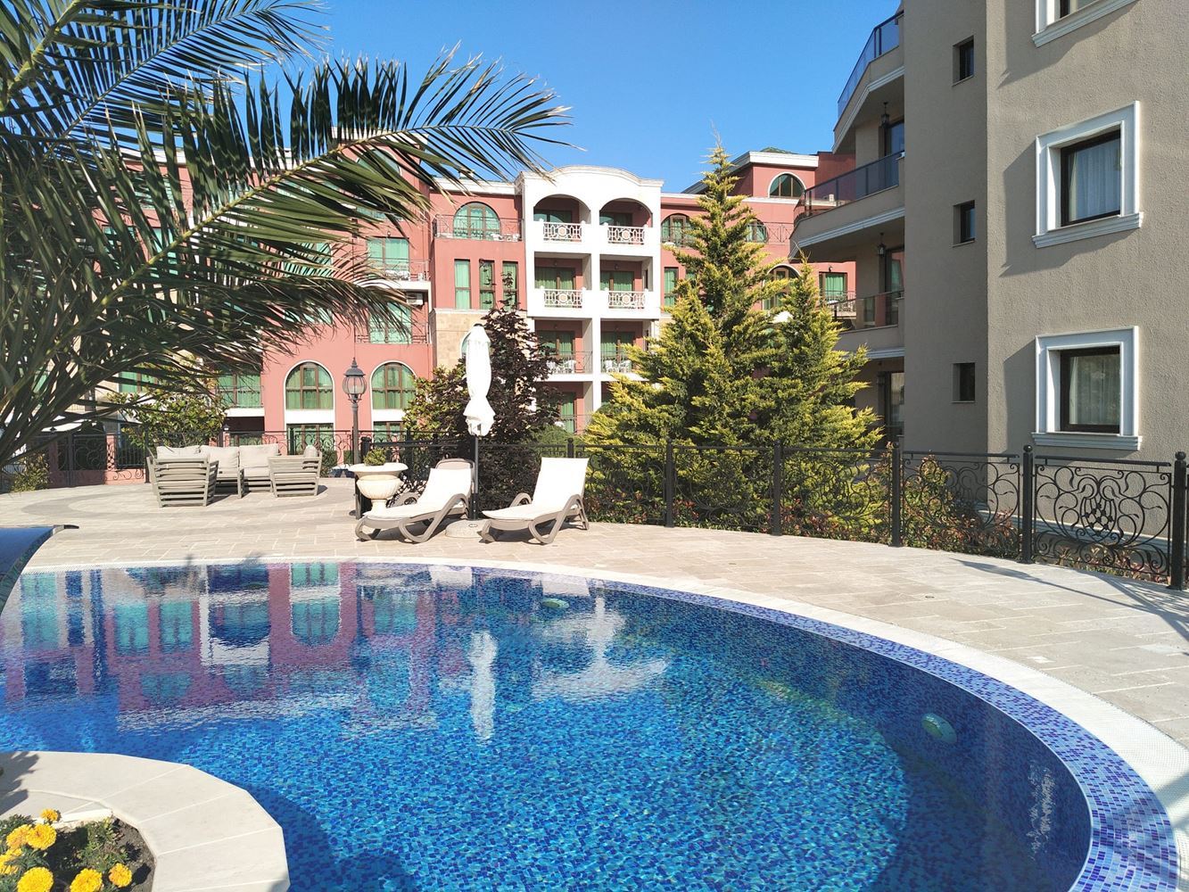 Sveti Vlas – Przestronne mieszkanie z dwiema sypialniami, panoramicznym widokiem na morze i dużym tarasem w luksusowym kompleksie