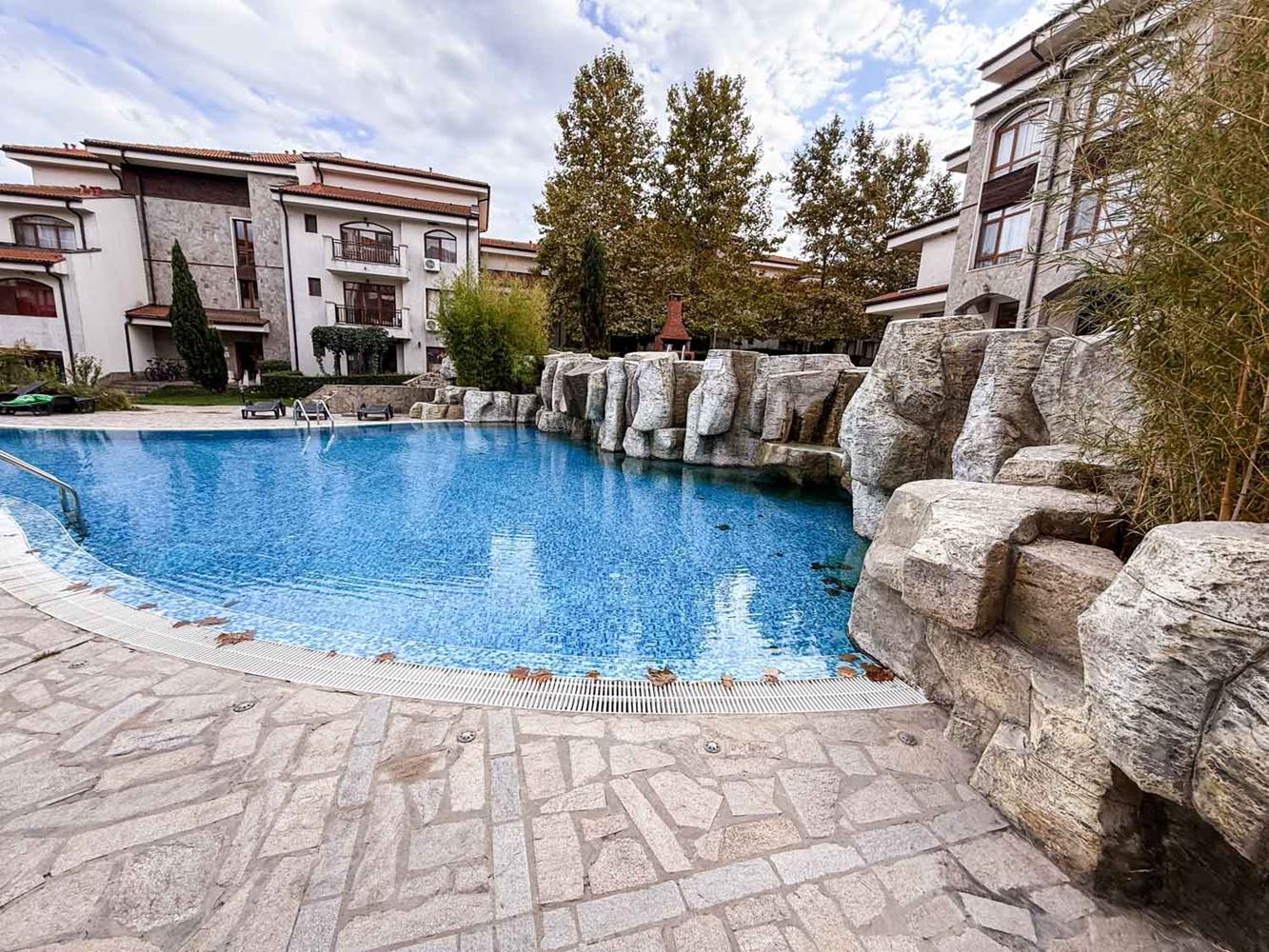 Kompleks zachwyca wyszukaną architekturą inspirowaną bułgarską tradycją odrodzeniową – czerwone dachówki, drewniane elementy i kamienne elewacje nadają wyjątkowy charakter i przytulną atmosferę. Mieszkańcy mają do dyspozycji różnorodne udogodnienia: obiekty sportowe, lokale gastronomiczne i rozrywkowe oraz kilka basenów do relaksu w ciepłe dni. Winda dodatkowo zwiększa komfort codziennego życia. Lokalizacja łączy ciszę i bliskość przyrody z wygodnym dostępem do większych miast i kluczowych punktów wybrzeża. Aheloy oferuje spokojne otoczenie do życia, a Burgas, Nesebar i Pomorie są w wygodnej odległości do pracy, edukacji, opieki zdrowotnej i rozrywki. Dzięki temu otrzymujesz najlepsze z obu światów – prywatność bez kompromisów w zakresie wygody.