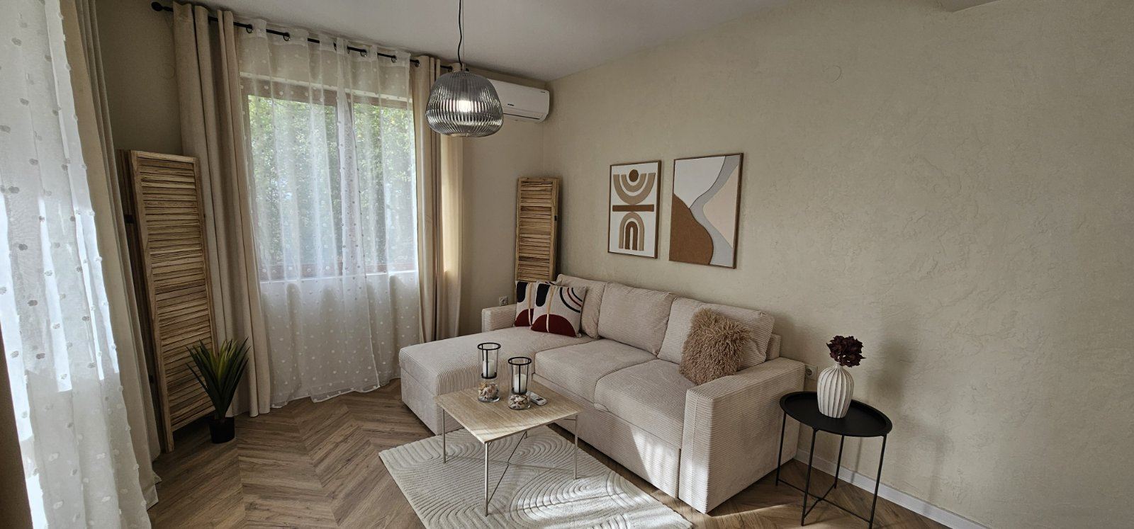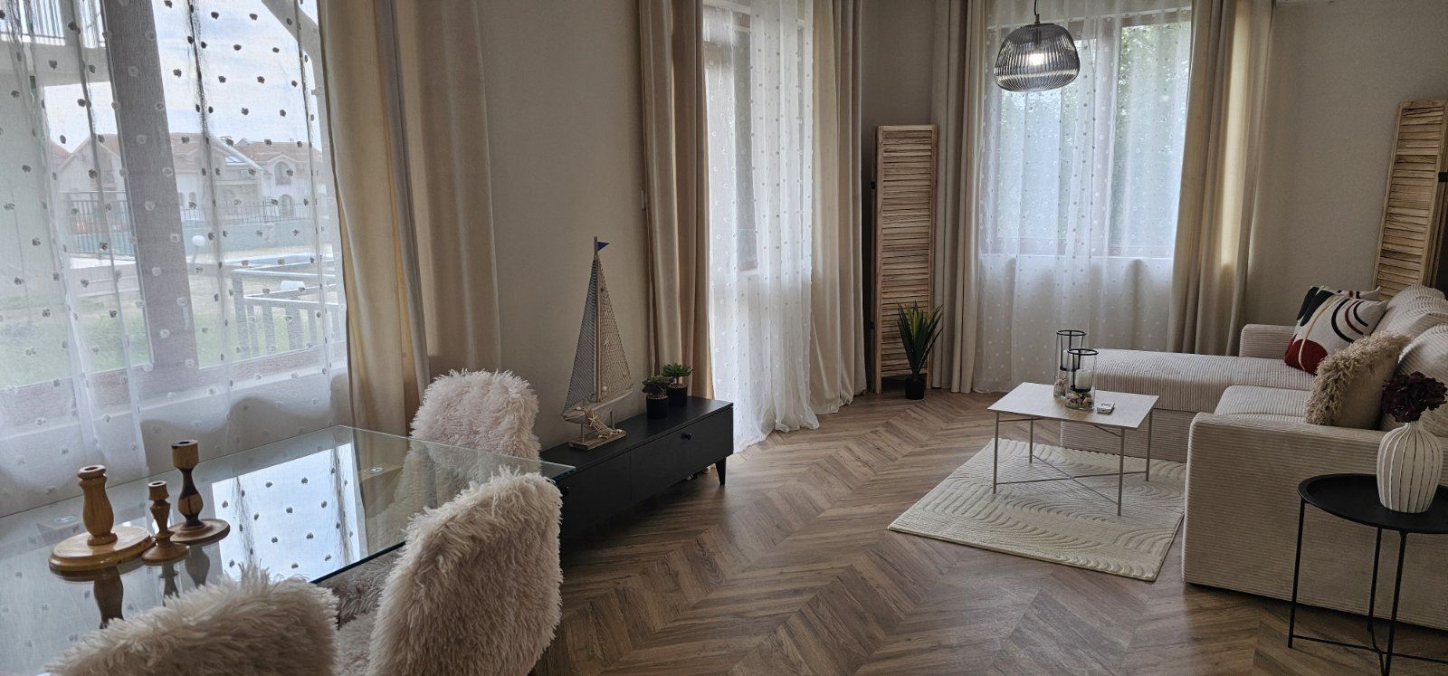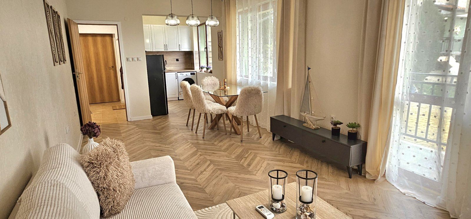 Oferujemy na sprzedaż stylowe trzypokojowe mieszkanie na wysokim parterze w Słonecznym Brzegu, o powierzchni 87 m², po pełnym designerskim remoncie, gotowe do zamieszkania. Nieruchomość bez opłaty konserwacyjnej, z Aktem 16 oraz osobnymi licznikami prądu i wody – idealna zarówno do zamieszkania przez cały rok, jak i jako inwestycja.