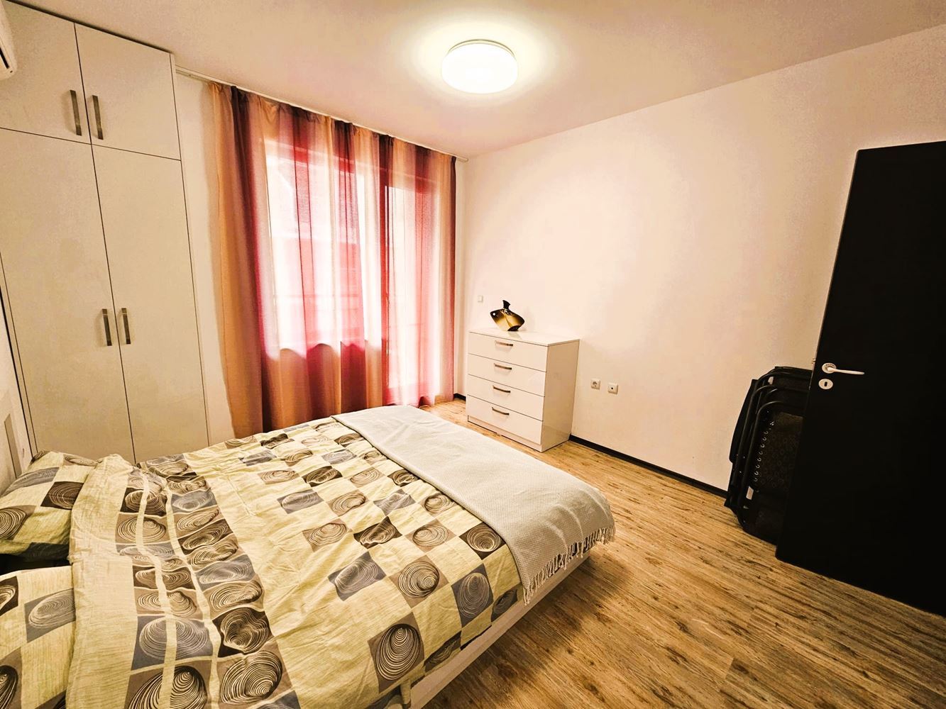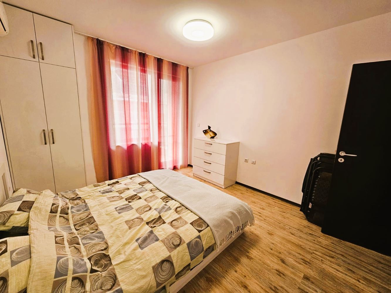 Prezentujemy jasne i przytulne dwupokojowe mieszkanie z imponującym widokiem na morze, położone w zadbanym budynku mieszkalnym z windą w mieście Pomorie. Nieruchomość znajduje się na drugim piętrze i oferuje spokój, komfort oraz bezpośrednią bliskość morza – zaledwie 50 metrów od plaży. Całkowita powierzchnia mieszkania to 74 m². Układ obejmuje przestronny salon z miejscem na aneks kuchenny i jadalnię, osobną sypialnię, łazienkę z toaletą, przedpokój oraz słoneczny balkon z frontalnym/częściowym widokiem na morze. Duże okna zapewniają doskonałe doświetlenie przez cały dzień, a taras to idealne miejsce na poranną kawę z widokiem na morze.