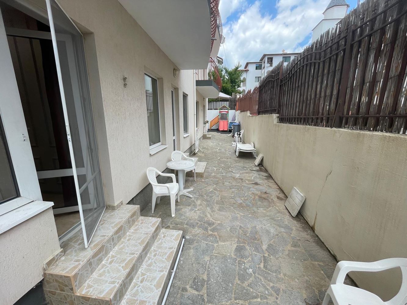 Jedną z największych zalet tej nieruchomości jest bezpośredni dostęp z pokoi do zadbanego dziedzińca, co daje możliwość cieszenia się spokojem kompleksu. Kompleks jest ogrodzony i nadaje się do całorocznego zamieszkania, zapewniając dodatkowe udogodnienia i bezpieczeństwo swoim mieszkańcom. Lokalizacja jest idealna - zaledwie 300 metrów od morza, co pozwala na łatwy i szybki dostęp do plaży. Ten apartament jest doskonałym wyborem do stałego zamieszkania, jak również do inwestowania w wynajem.