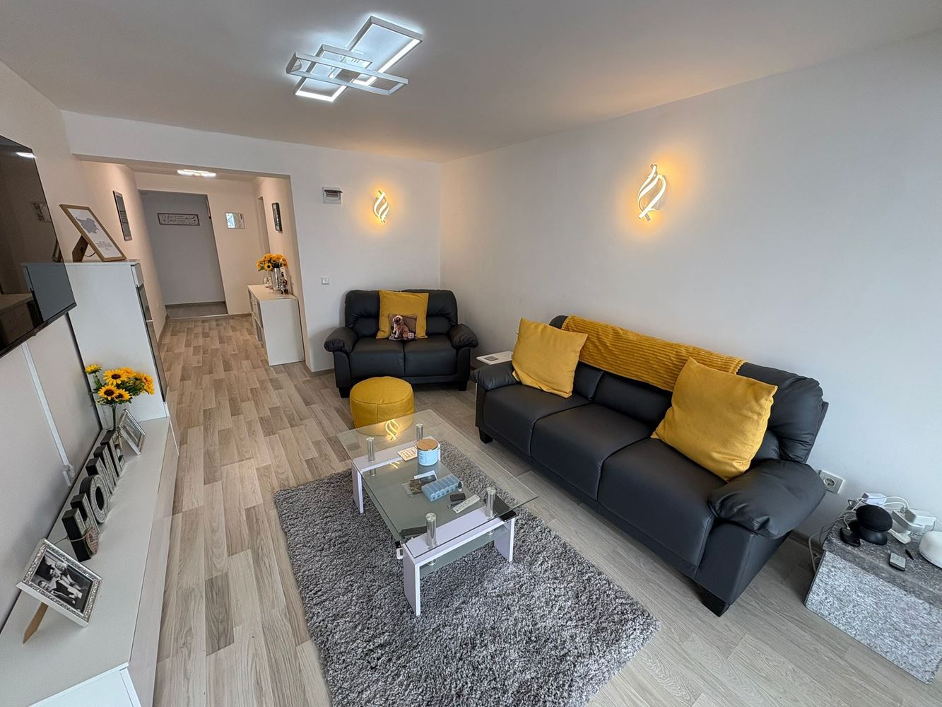 Mieszkanie oferuje funkcjonalny i wygodny układ: przestronny i słoneczny salon z aneksem kuchennym i częścią jadalną, dwie oddzielne sypialnie, jedna praktyczna łazienka z toaletą oraz przytulny taras/wiranda (1 balkon), który naturalnie powiększa przestrzeń dzienną i tworzy przyjemne miejsce do relaksu. Wnętrze utrzymane jest w nowoczesnym stylu, z starannie dobranymi meblami i wysokiej jakości detalami, co sprawia, że dom jest gotowy do natychmiastowego zamieszkania.