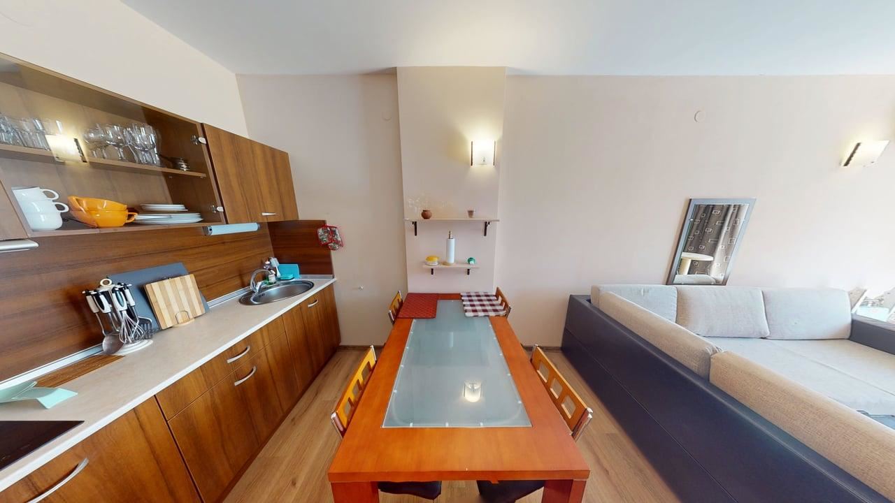 Ta wyrafinowana oaza przyjemności i relaksu znajduje się zaledwie krok od plaży w Słonecznym Brzegu! Prezentujemy Państwu nowoczesny i elegancko urządzony apartament z jedną sypialnią o łącznej powierzchni 67 m2, położony na trzecim piętrze luksusowego kompleksu. Główne cechy nieruchomości obejmują hol wejściowy; przestronny salon, zaprojektowany z dbałością o szczegóły i styl; przytulną sypialnię; rozległy i słoneczny balkon, który zapewnia prywatność i widoki na basen; łazienkę, w pełni wyposażoną we wszystko, czego potrzebujesz do komfortowego pobytu. Apartament jest w pełni umeblowany najwyższej klasy meblami tworzącymi przytulną i stylową atmosferę.